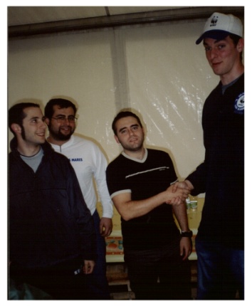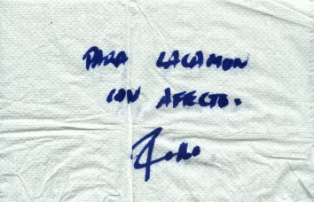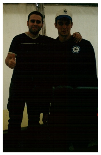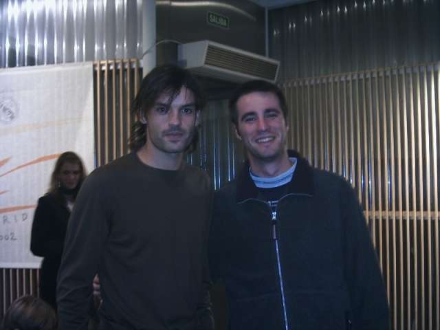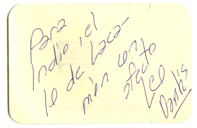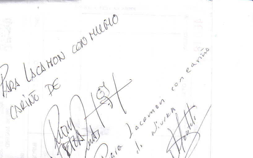 "Un miércoles de luho",como diría mi amigo el señor Conejo. Despues de una victoria madridista,el joven Goldberg presentía que esa noche iba a ser diferente (para estas cosas tengo un sexto sentido) ya me lo dijo Valdano.Despues de intentar convencer a Porcu, y al capo, de salir la noche prometedora, no pude mas que llevarme a Edu, que se apunta a un bombardeo. Nos dirigimos al Fraguel a calentar motores donde Edu se hizo coleguita de un ruso con gorro y todo, un mítico.Allí quedamos tambien con Vanesa (compañera del curro) su hermana Carolina e Ivan, y estuvimos un rato hasta que cerraron. Luego, nos llevaron a un antro-cine-pub que olía un poco raro, con conciertos de pelusones descamisados de los 80. Despues de esto, no podiamos mas que llevarles a nuestro antro particular, si chicos, Nuit, todo un clásico. Nada mas entrar me dice Edu que a tenido una experiencia sobrenatural en los baños, alguien le miraba mucho.Si chicos, alli estaba, todo un ídolo de masas mirándole el nuflo a mi compañero.Para ser sincero, desconfíe un poco de las palabras del tio Edu, y pregunté al abuelo gorila que esta siempre mirando la pista, y de vez en cuando me invita a unas copas, que si era cierto, me lo confirma y me señala su ubicación en la pista. No me lo podía creer,bailando con nosotros, mi amigo Leonardo, me puse a su lado me dieron un pañuelo, y allí, bailando un baile nuevo,un baile nuevo,el baile del pañuelo...Edu renegaba de mi y se alejó unos metros, la verdad es que tuvo suficiente en el baño. Cuando terminó su actuación, le hablé de Lacamón, y muy amablemente me dijo que el tambien quería aparecer en la sección Lacamón Glam, rebusco en su cartera, y sacó una foto preguntándome como se llamaba el equipo, lacamón punto que? al cual respondí que va a ser, punto com, mi respuesta le hizo gracia, y para muestra la foto que adjunto, y el pañuelo de Dantés.Porcu, le ponemos en la página? le damos el gusto? Tu decides. Chicos,La Nuit esta mejorando con el tiempo, va gente con clase y saber hacer, para los aficionados al roseo, tambien decir que estaba Roni, el marido de la Loli Alvarez, con unas trenzas muy graciosas.Luego os quejais de Nuit, y la verdad no se por qué con los gratos momentos que nos a dado.